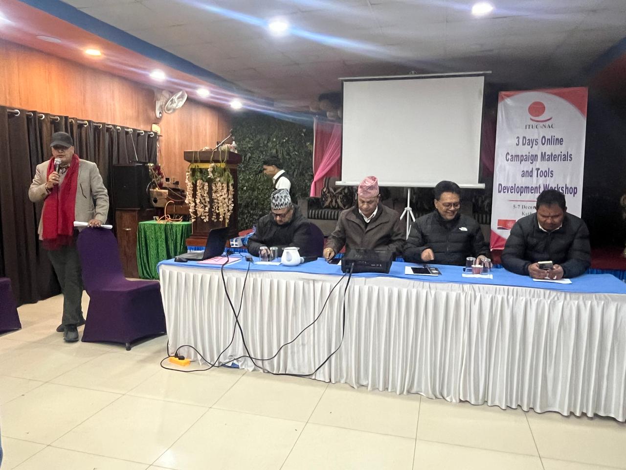 काठमाडौं । न्यायोचित रुपान्तरणको विषयमा अनलाइन माध्यम मार्फत अभियान सञ्चालनका लागि सामग्री निर्माण सम्वन्धी सीप विकास कार्यशाला सम्पन्न भएको छ । अन्तराष्ट्रिय ट्रेड यूनियन महासंघ, नेपाल आवद्ध समिति (आईटीयूसी न्याक) द्धारा आयोजित सो कार्यशाला तीन दिनसम्म सञ्चालन भएको थियो ।